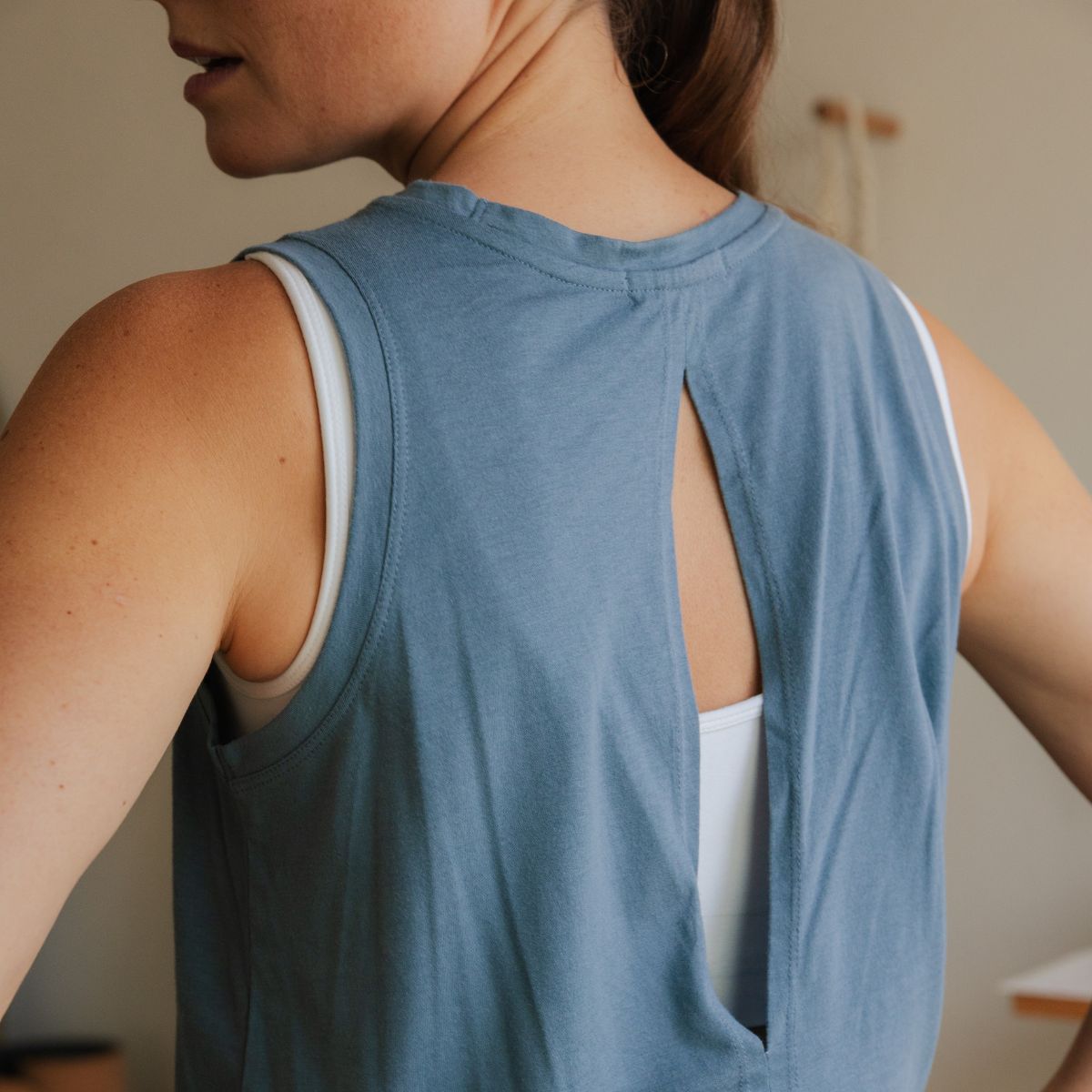 Coton-modal, coupe fluide, et une ouverture délicate dans le dos qui accompagne chaque mouvement. Une pièce pensée pour respirer, bouger et se sentir libre.