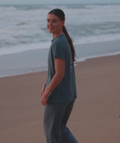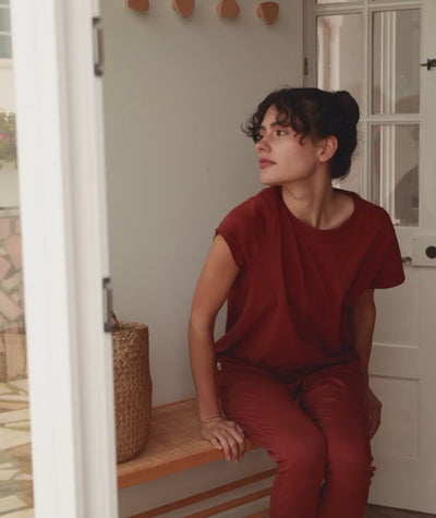 Nos collections naissent entre studio et forêt, entre tapis et bord de mer. Des vêtements conçus pour vivre, respirer et bouger librement.